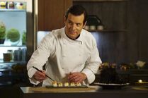 After Kenji fled the country, Justine, Ben, and Rhys were stuck looking for another way to take down the contraband traffickers. The cameras Rhys had placed showed footage of a woman coming in to retrieve the diamonds from a fish. Justine recognized a folder she was carrying as a diplomatic pouch. Ben had Alice run the plate. The woman worked for Kohana Takashi, a diplomat. They developed a plan to open a new restaurant and used that to convince her to use them as her new front for contraband. Justine said the FBI didn't go for it, because they didn't want to get caught investigating a Japanese diplomat. Ben and Rhys suggested they do it and leak evidence to the press to force an arrest. When they learned that Takashi's son, Jesse, had an interest in exclusive events and items, they decided to lure him in with an exclusive dinner party. They invited everyone but him, which made him desperate to attend. He came to their place to demand an invitation. Ben cooked while Rhys charmed Kohana. Ben then served her fugu and said they had suppliers that could move anything. Just then, her son came by and said she was going back to the consulate because she was drunk. Jesse then came back in and said that he was the diamond broker, not his mother. He threatened them with his assassin, Yumi, if they didn't tell him what they did with Kenji. They offered him $3 million in exchange for letting them go. He sliced Rhys's arm, using the same knife used to cut the fugu, and sent Ben to get the money from Rhys's car. At the car, Ben found Alice, who was taking the money to give back to the Cartel. They had a confrontation over it.